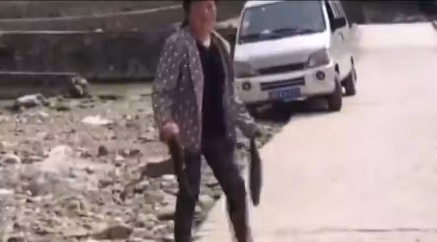 當有記者聞訊趕來時,正好目睹了這樣壯觀的景象,路邊的每一位村民,手中提著成年人手臂那麼長的大魚。
