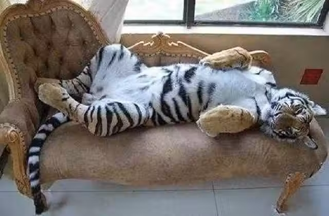 慢慢地小老虎長大了,小狗狗也長大了,不過,這只長大的小老虎,不但沒有因為體型上的優勢而去欺負狗狗,反而還是天天的粘在狗狗身邊,跟牠玩耍,玩累了,還要在狗狗身上睡覺。