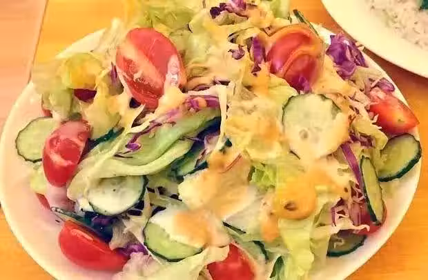 圓白菜,紫甘藍,生菜,黃瓜,聖女果,沙拉醬