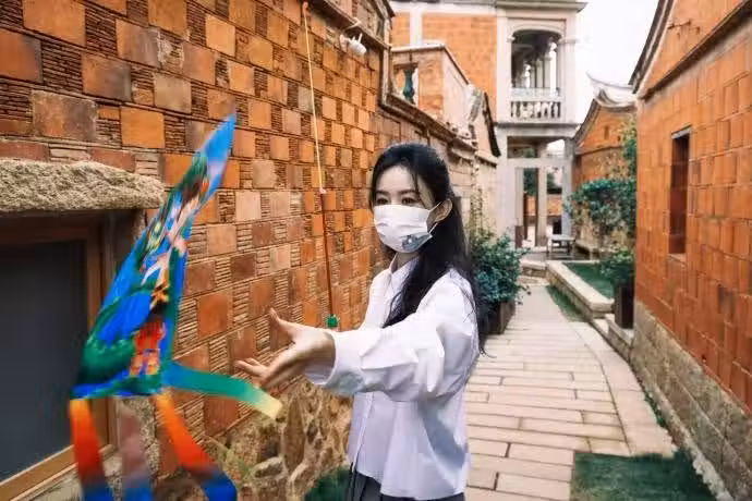 趙麗穎漫步古城閒適自在 放飛風箏靈動可愛好少女