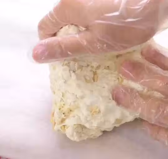 之後再不斷翻折,翻折可以讓牛軋糖進一步充氣,這樣口感就會不那麼扎實。