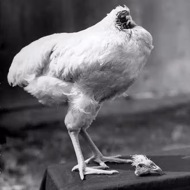 雞仔斬首後成「不死鳥」,無頭存活18個月,長胖5斤引科學家關注