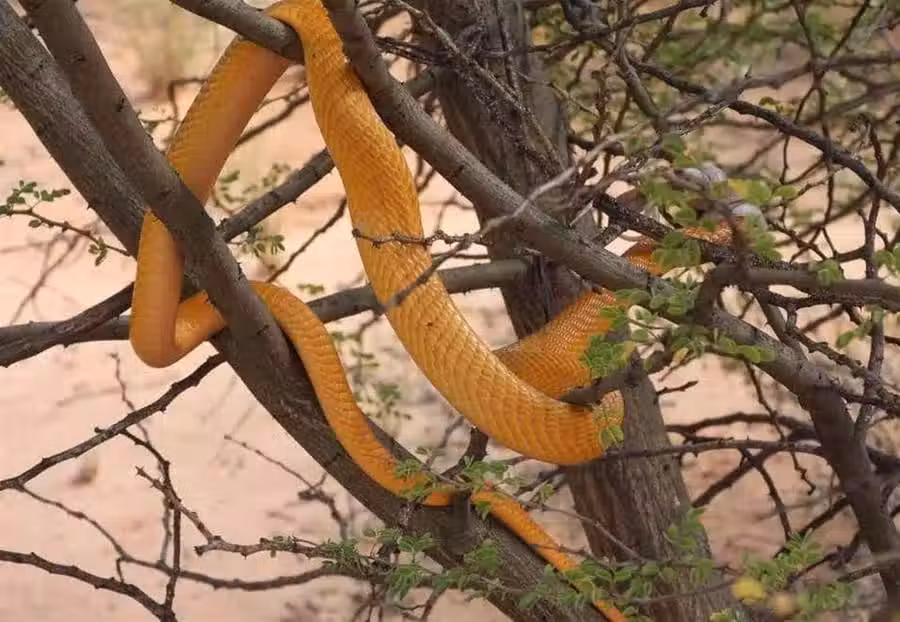 非洲屋蛇裸絞比自己大得多的黃金眼鏡蛇,結果因用力過猛導致「脫肛」