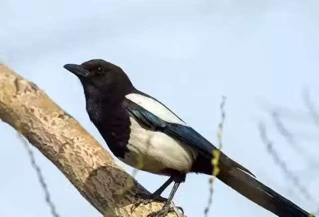 喜鵲是喜慶的象徵,古代民間傳說,七月七日牛郎織女鵲橋會就是依靠喜鵲橋構築來完成的,如果家中出現喜鵲唱歌,就是代表有好事發生,表示家中要來達官貴人,或者家庭有人事業取得巨大成功等等,所以喜鵲前來唱歌報喜,所以家中有喜鵲唱歌一定不要趕它們走!