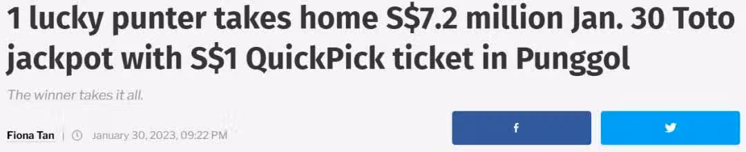 他所付出的,可能只有1新幣的彩票錢!可以說是以小博大的典範了~