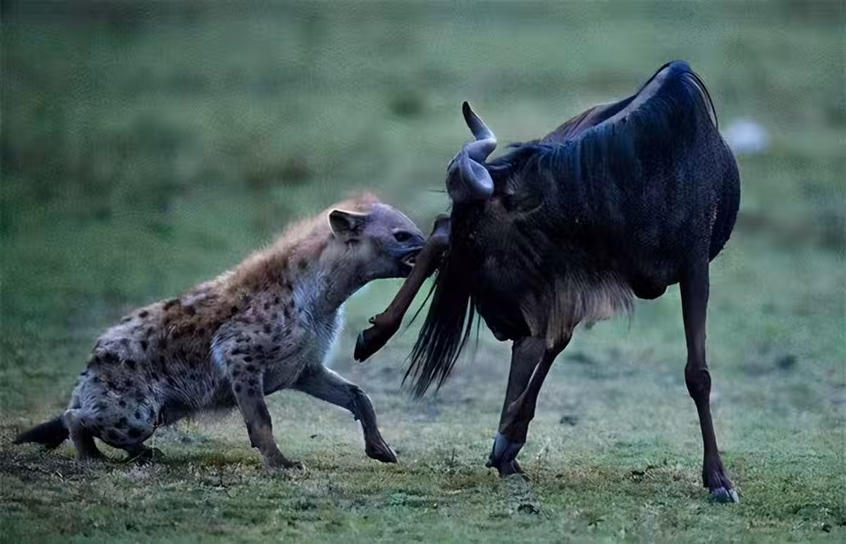 由於這種方式太過殘酷,所以草原上的動物們凡是親眼目睹同類被鬣狗捕食的,都會膽戰心驚,在被鬣狗圍捕的情況下,寧可跳到河水裡成為鱷魚的獵物也不願意被鬣狗狩獵。不單單是食草動物,即使是獅子在面對鬣狗群的時候,也不得不蹲下身子,保護好自己的臀部。
