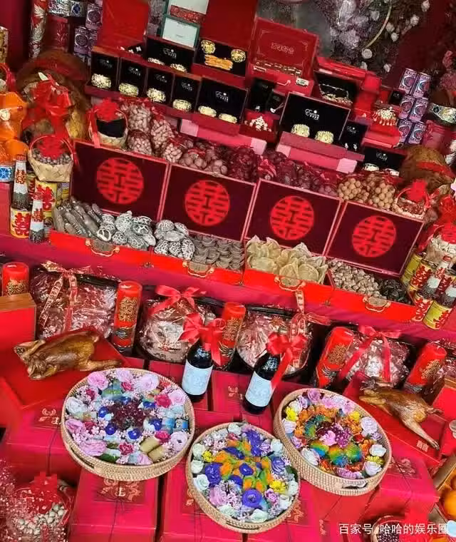可以看出,房間裡的彩禮完全包圍著林慧俐和丈夫,禮物甚至比人還要高,場景十分震撼。