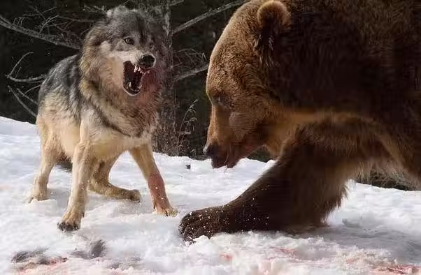 儘管我對灰熊非常尊敬,但我從未害怕過狼,因為它們幾乎不會攻擊人類。但是這張照片改變了我的想法,通過這場對抗,足以驚掉我的下巴。為什麼一隻熊會害怕一隻體型要比它小那麼多的狼。