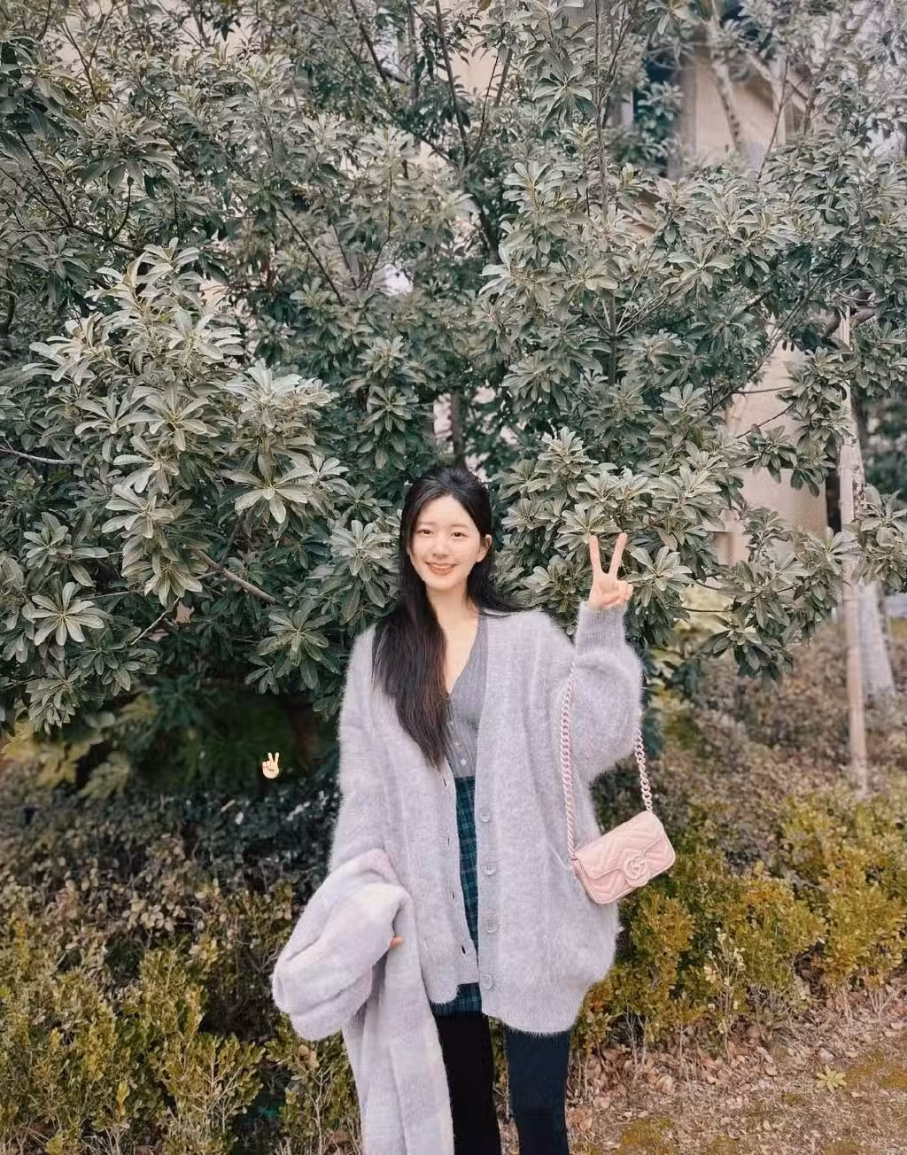 趙露思曬元宵節戶外隨拍 身披毛衣化身活潑小灰兔