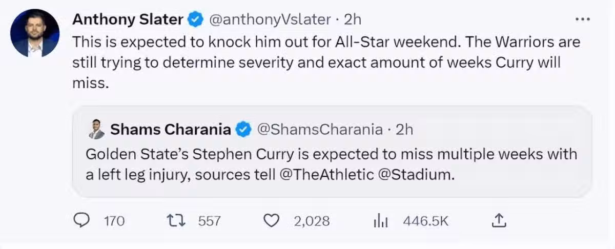 勇士官宣庫里傷情!韌帶撕裂+小腿挫傷預計缺席全明星3至6周