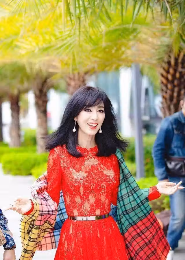 67歲米雪真讓人嫉妒!穿紅色蕾絲連衣裙亮相,顏值回春太美