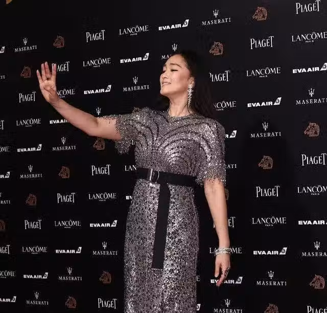 57歲的鞏俐穿著一件銀色亮片連衣裙,雖然滿是水桶的腰,但他的好氣質太顯眼了!休閑披肩長髮看起來有點拖沓,不顧氣質依舊。