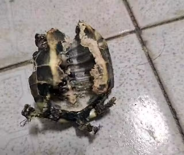 主人買了一隻寵物龜,幾天后被啃得只剩下殼,抓到兇手後,氣得直咬牙
