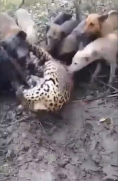 「豹落平陽被犬欺」,村民用20隻獵狗戰花豹,花豹反抗至最後一口氣也沒服輸