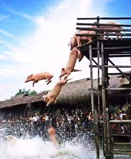 大爺訓練「豬跳水」,其主要目的竟是為了「口感」,大爺挺牛啊