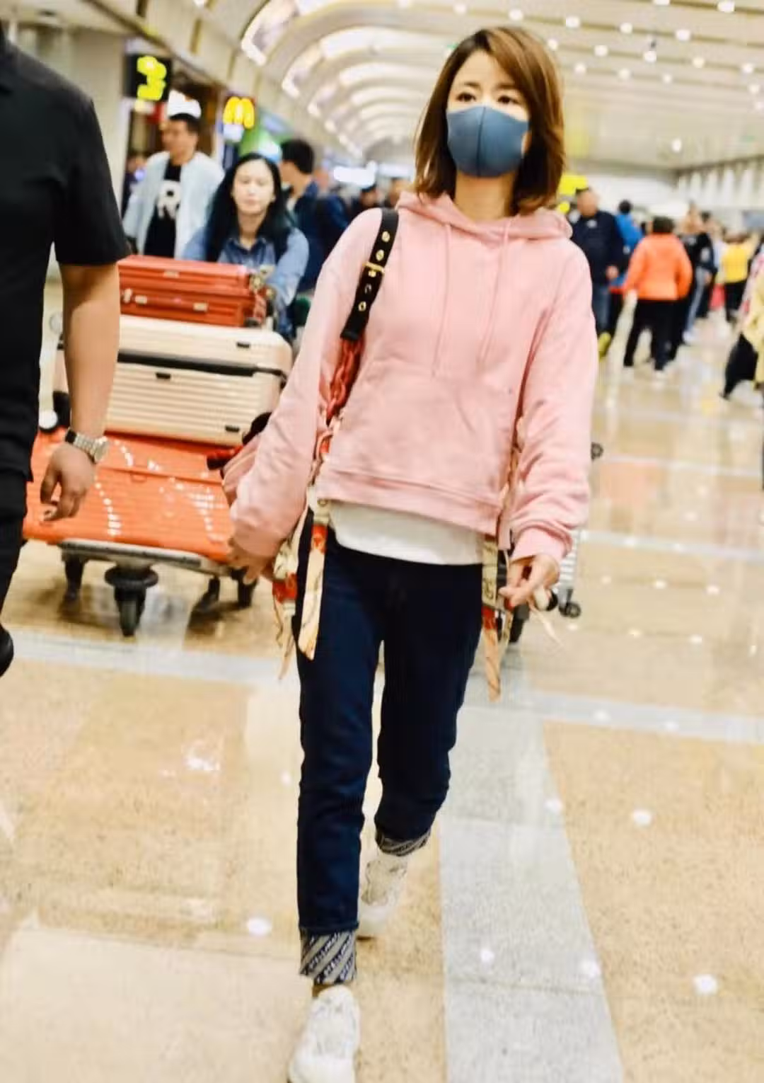 林心如獨自走機場!穿粉色衛衣配9分褲好洋氣,看不出有47歲