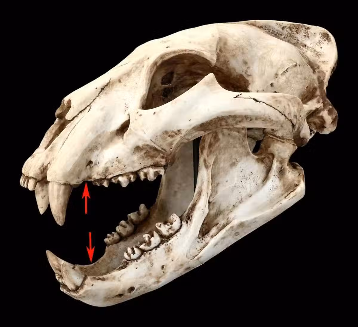 其他貓科為了方便犬齒完美鍥入獵物頸椎,都在犬齒後面留了個縫,它們的犬齒和獵物的頸椎就像鑰匙和鎖一樣契合。