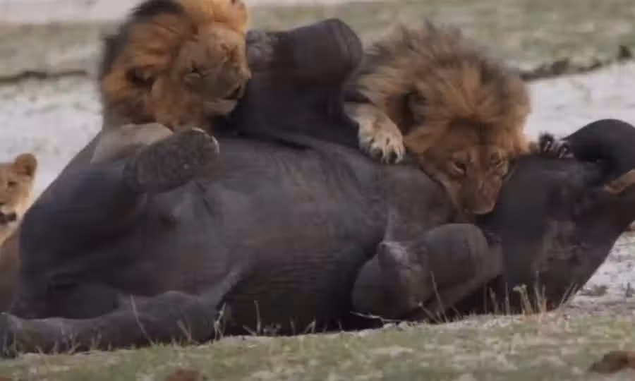 小象疼痛的哀嚎聲,並沒有引起獅子們絲毫的憐憫,反而更加激起它們的食慾。
