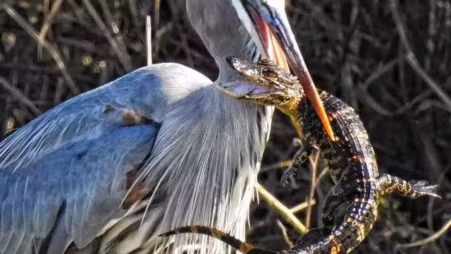 鱷魚被蒼鷺囫圇吃下,整整掙扎了25分鐘,生命還有多少奇跡?