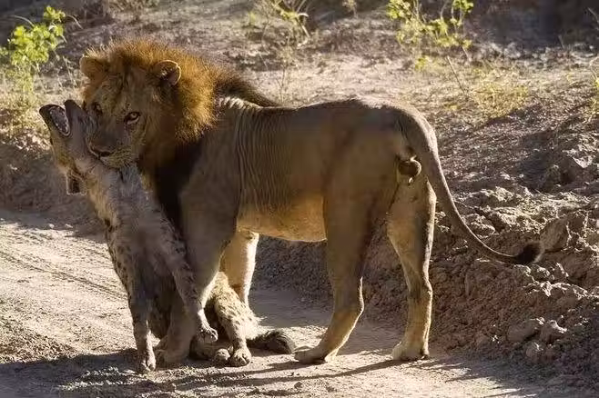 罕見的36張照片,一虎挑三獅,蜜獾吃蟒,鷹捕猴,豹殺豹,雕戰狼_動物_獅子_鱷魚