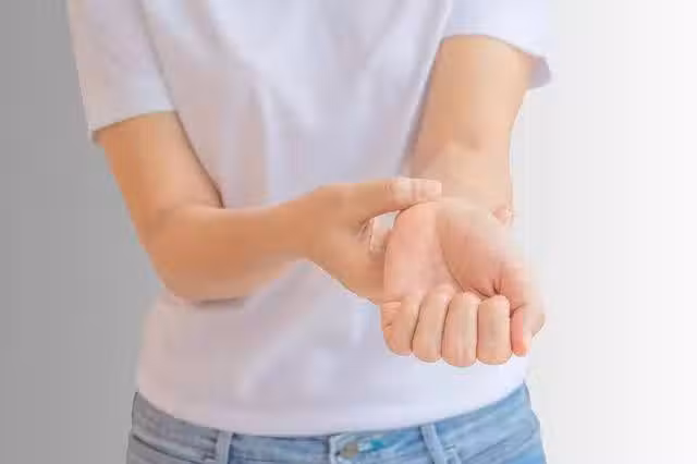 在穴位上按壓5秒後慢慢放開,接著重複20次,再換另一隻手做,一直到此處出現酸痛感為止。