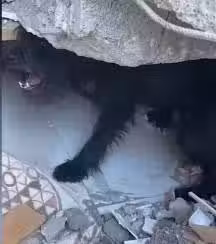 ▼搜救犬發現生機後,立刻汪汪叫引起隊員注意,方便隊員評估地形後展開搜救行動。