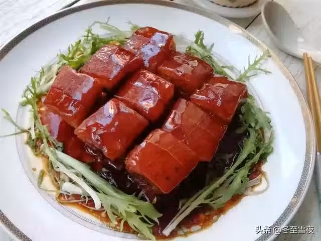 【東坡肉】所需材料:五花肉1000克、鹽適量、蔥1段、姜1塊、大蒜2瓣、花雕酒250克、生抽醬油2湯匙、紅燒醬油2湯匙、冰糖20克、水澱粉適量