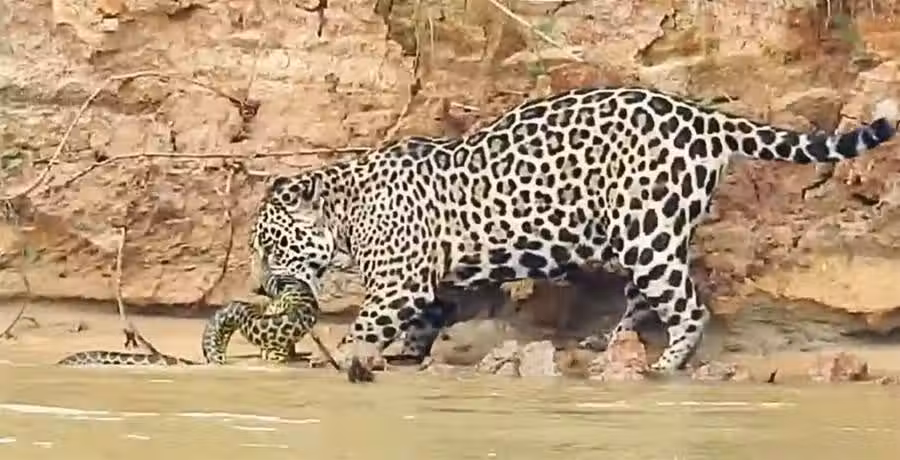 14:經歷了一場史詩般的大戰之後,一隻蟒蛇吞食了一隻大的鱷魚,撐得肚子都變形了,震驚。