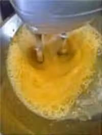 9.轉高速打發約4-5分鐘,再轉低速2分鐘。(室溫低可全程坐個熱水盆打發)