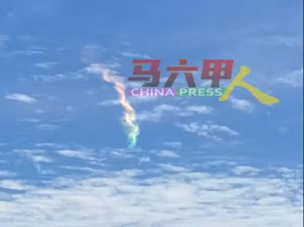 貌似祥龍與龍珠的彩色雲朵,出現在馬六甲上空,猶如祥龍降臨,為馬六甲添福氣與吉祥。