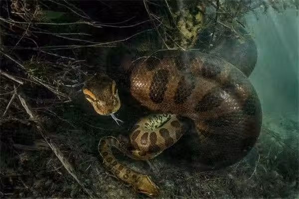 《狂蟒之災》森蚺,高大壯的體型,一口吞掉凱門鰐,繁殖結束生吞八條雄森蚺