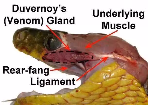 從杜氏腺所在位置及胚胎發育的研究證實,該腺體與其他毒蛇的毒腺為同源腺體,分泌物也與前毒牙蛇類分泌的毒液具有同源性。