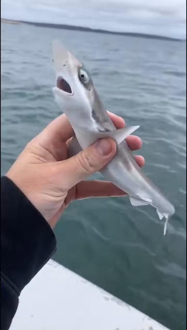 雖然網友第一次見到鯊魚寶寶,很想接著了解一番,但擔心一會兒會被寶媽找上門來,所以只短短拍攝了一段幾秒鐘的影像,立刻將鯊魚寶寶放歸大海。