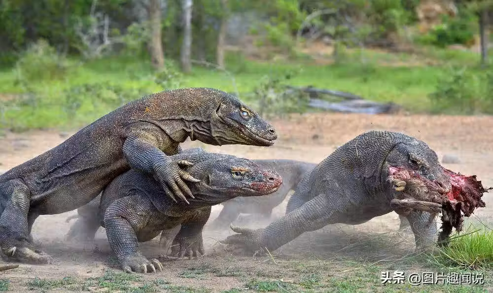 04:科莫多巨蜥是陸地的霸主,可以吃掉80%自身體重的食物,胃口與體型很相匹配。看這隻科莫多巨蜥吃的多香,旁邊那兩隻在幹什麼?