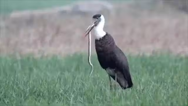 而鸛吃起蛇來也是毫不費力,啄幾下就搞定,迅速吞入腹中。