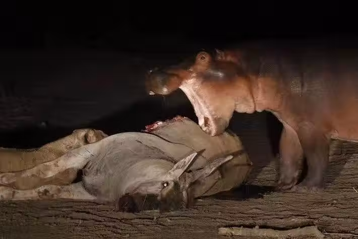 河馬從獅子、鱷魚和鬣狗口中搶得了伊蘭羚羊