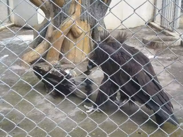 禿鷲金雕「誤放同一籠中」,金雕被撲倒「瘋狂撕咬」,趴在地上成這模樣:雕兄太慘了!