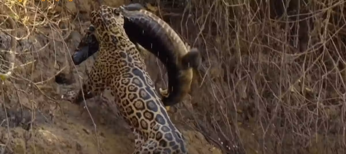 美洲豹下水獵殺鱷魚,一擊致命,鱷魚毫無還手之力_刀疤_公豹_母豹