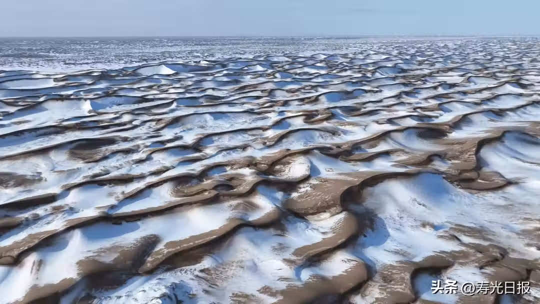 雪後,八道橋沙漠被白雪所覆蓋,形成了美麗的沙漠雪景自然景觀,高空俯瞰,白雪、沙漠相互交融,勾勒出優美線條,猶如波濤海浪,非常壯觀。雪地中突然竄出四隻鵝喉羚,快速向遠處奔去,無人機跟隨其後抓拍到了鵝喉羚在雪地中警覺奔跑的畫面。在雪中能夠拍攝到鵝喉羚非常罕見。陳國林是額濟納旗的一名戶外運動愛好者,他經常到八道橋附近遊玩,前不久曾在這裡看到為數眾多的鵝喉羚蹤影。