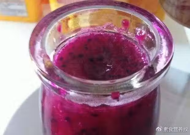 1. 把火龍果切成小塊,打成果泥,倒入鍋中,加熱。