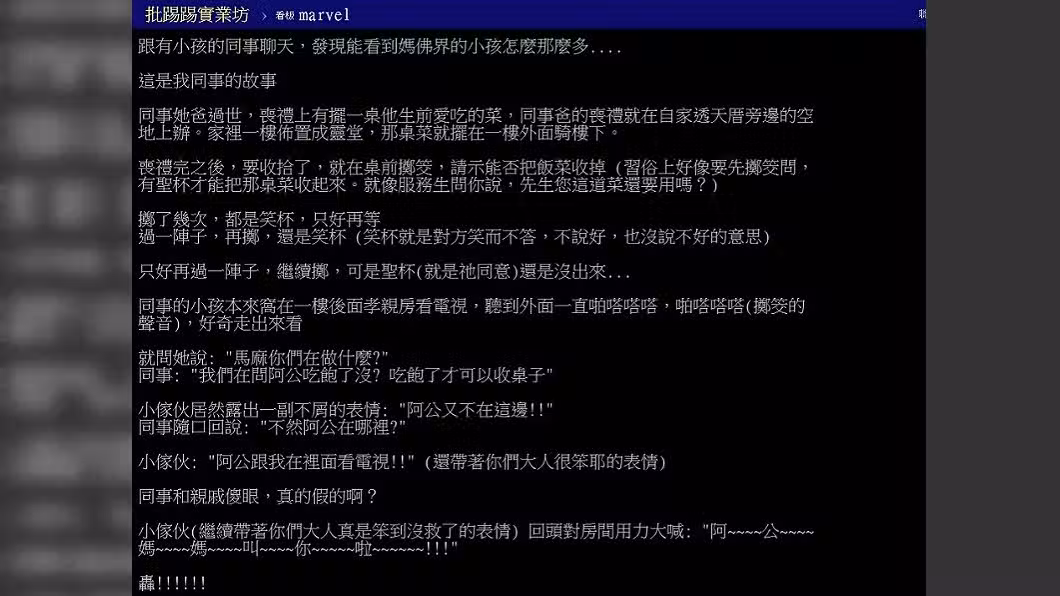 告別式上擲筊「問爸爸吃飽沒」苦無聖杯 兒子跑出來喊「阿公在房間裡阿」後續讓網友淚崩:有洋蔥