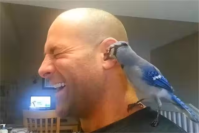 圖丨蒂娜的丈夫和格雷西 格雷西的「廬山真面目」 時光匆匆而過、倏爾遠逝,一轉眼格雷西來到蒂娜家裡已經一年的時間了,當初那個灰突突的小可憐也已經逐漸生出了一片片藍色的羽毛,成為了一道漂亮迷人的風景線。 眼看著格雷西已經逐步長大,蒂娜覺得他們應該對格雷西有更深一步的了解,於是便開始著手翻閱相關資料。 經過蒂娜詳細地查找翻閱,以及將資料與格雷西進行仔細的對比,最終確定這隻小鳥的種類為「藍冠鴉」,因為頭頂上有一簇極其明顯的藍色羽毛而得名。