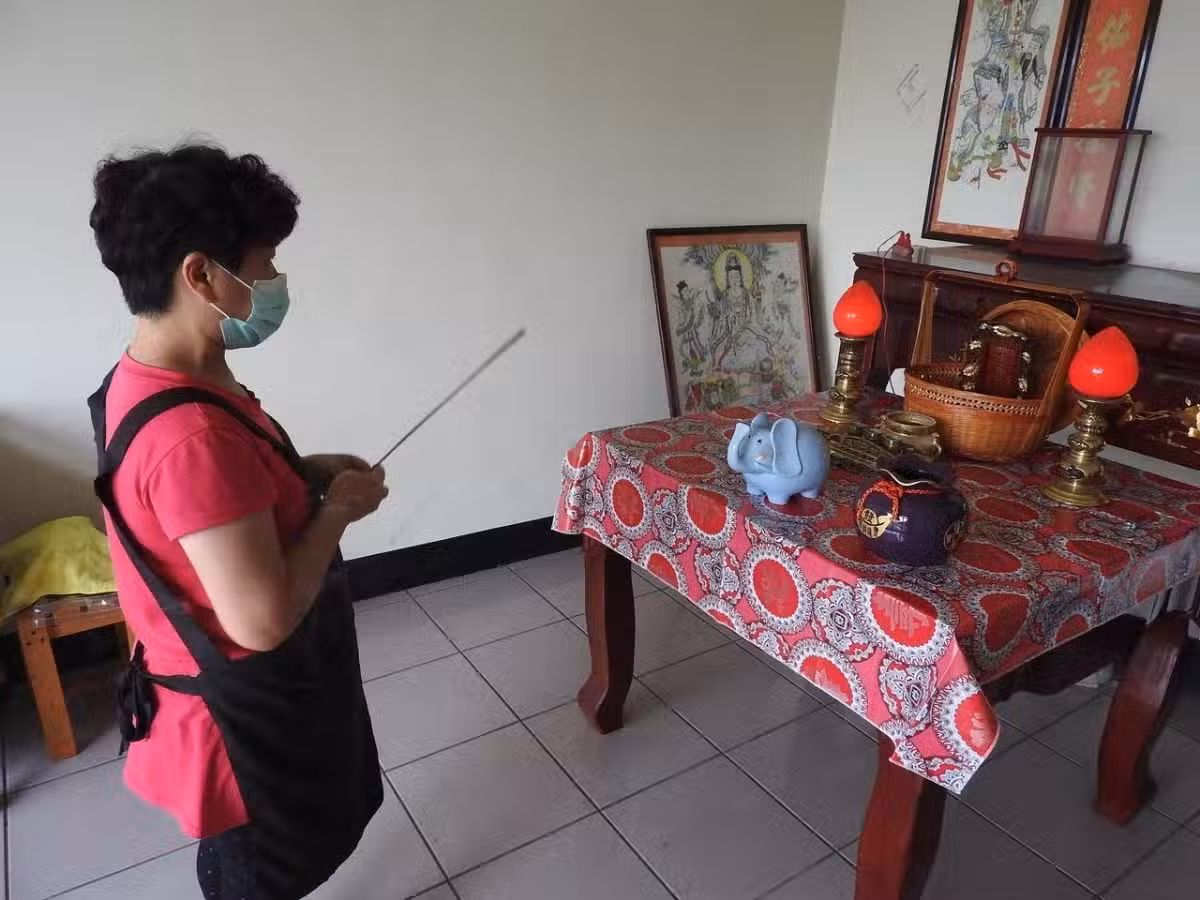 而為了提倡環保,加上近幾年埔里的空汙問題又越來越嚴重,王重信在那之後又再次靈機一動,想把燒金紙也改成給現金,於是再一次擲筊詢問祖先,沒想到也獲得了許可,於是祭品和金紙的費用這下子全都變成了現金,每次祭祖都會放進供桌上的存錢筒裡,一年下來大約都能存3、4千元。