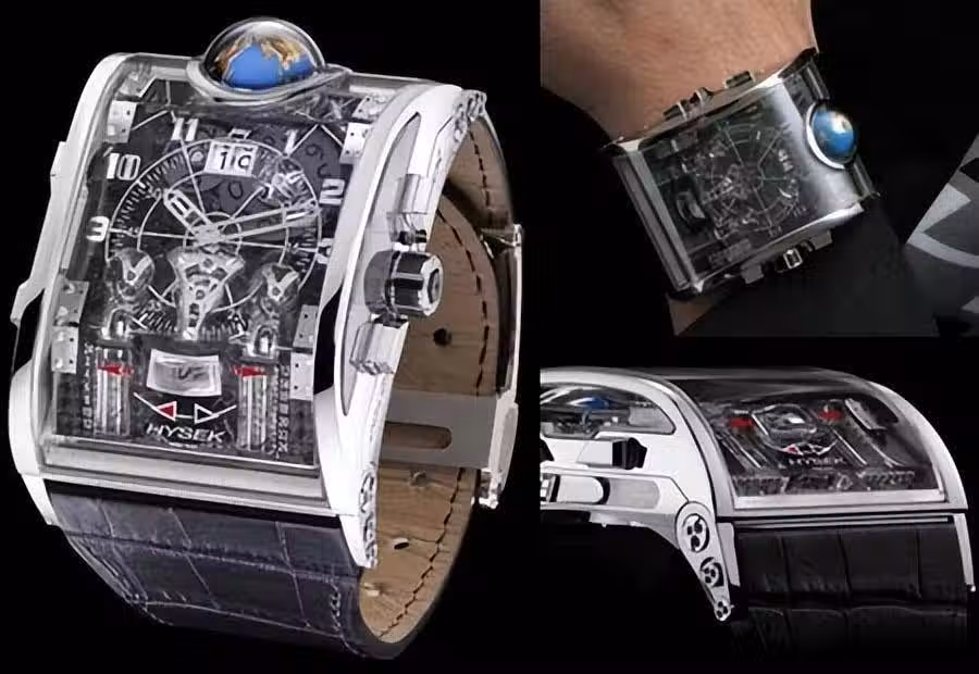 大多數人對Colosso的第一印象可能是一個大型的全彩色3D地球模型。位於藍寶石水晶圓頂下的地球儀每24小時轉動一圈,與時間同步。它給人留下大膽的第一印象。簡而言之,Colosso是一款多時區手錶,配備三問報時器,裝在一個由藍寶石水晶和黃金製成的獨特表殼中,可以一覽機芯的內部運作,該機芯是來自 Hysek 的 62 顆寶石手動上鏈內部機芯。