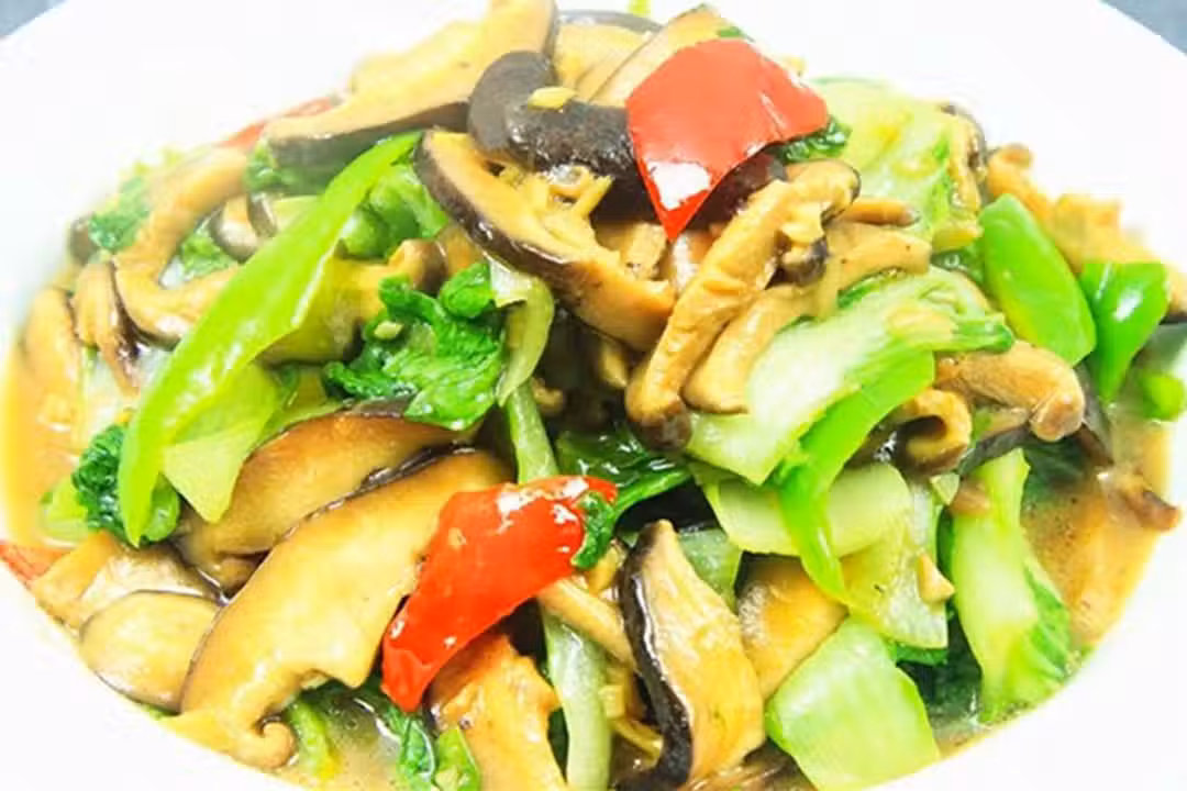 1.香菇幾朵,去掉香菇根,切成片,用淡鹽水浸泡洗乾淨;;小白菜打散,洗凈泥沙後切成段;青紅椒切成菱形片,用來搭配顏色;另外切點蔥花、薑末、蒜末備用。