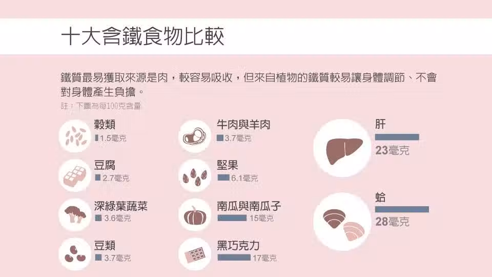 蛤蠣不僅鐵質含量高,它也含有其他營養素,像是促進製造紅血球的維生素B12、預防骨質疏鬆的鈣質,亦或是透過銅讓人體能夠充分利用鐵質。
