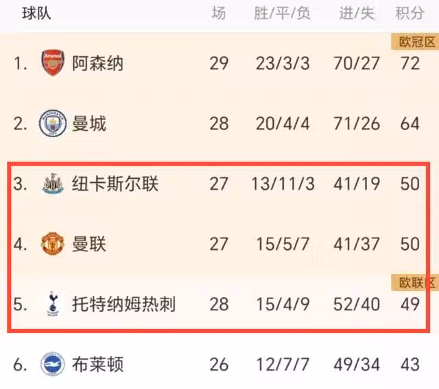 在0-2之後,曼聯爭四開始出現危機,他們不僅被紐卡斯爾反超,而且目前僅僅領先第五的熱刺1分,一旦後者本輪做客能夠在埃弗頓身上拿到1分,曼聯就將被擠出前四。