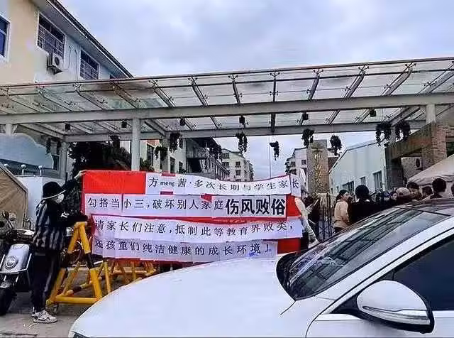 據《百度新聞》報導,這此事件一開始是由一位王姓媽媽在幼兒園家長群組點名方姓女老師,公開控訴她明知對方有家室還當小三,出軌學生爸爸,讓她失去丈夫、孩子也失去爸爸,原本甜蜜的家庭因此支離破碎,而該名方姓女老師第一時間緊急回應「有事情可以面談,不要影響校內工作,在我學校起鬨,我們要報警!」