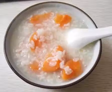 胡蘿蔔250克左右,洗凈切片,粳米100克,同放鍋共煮粥。煮熟後可加適量油鹽調味食用。有補脾健胃,養陰潤燥,助消化作用。適用於脾胃虛弱或老年人的食欲不振,消化不良,夜盲,皮膚乾燥,高血壓,糖尿病等症。