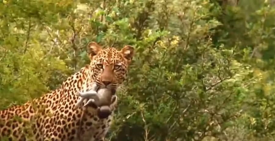 花豹偷偷獵殺一隻小狒狒,干凈利落不拖泥帶水,得手後被狒狒群圍攻